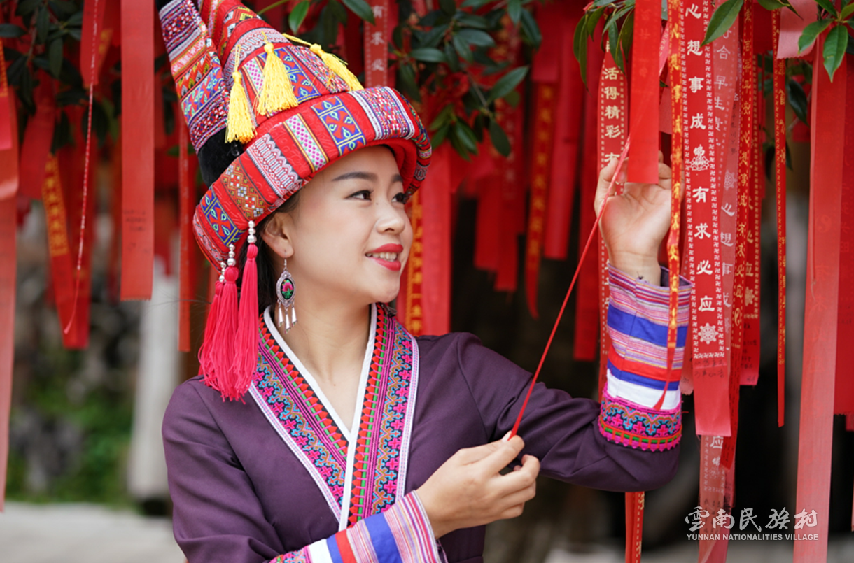 彝族在云南境內(nèi)約471萬人,是省內(nèi)人口最多、分布最廣的少數(shù)民族,主要聚居在金沙江、元江流域和哀牢山、無量山腹地。彝族是一個能歌善舞的民族,民間打歌、跳樂之風盛行,大三弦、跌腳舞久負盛名。火把節(jié)是彝族最具特色的民族節(jié)日。彝族村占地50余畝,三虎浮雕墻與虎頭內(nèi)祖師形象表現(xiàn)了彝族虎鷹文化。太陽歷廣場圖騰柱上有太陽、虎、火和八卦圖形象,周圍環(huán)繞著10個朝向不同的月球造型,外圓周有12生肖石雕。依山而建的“...